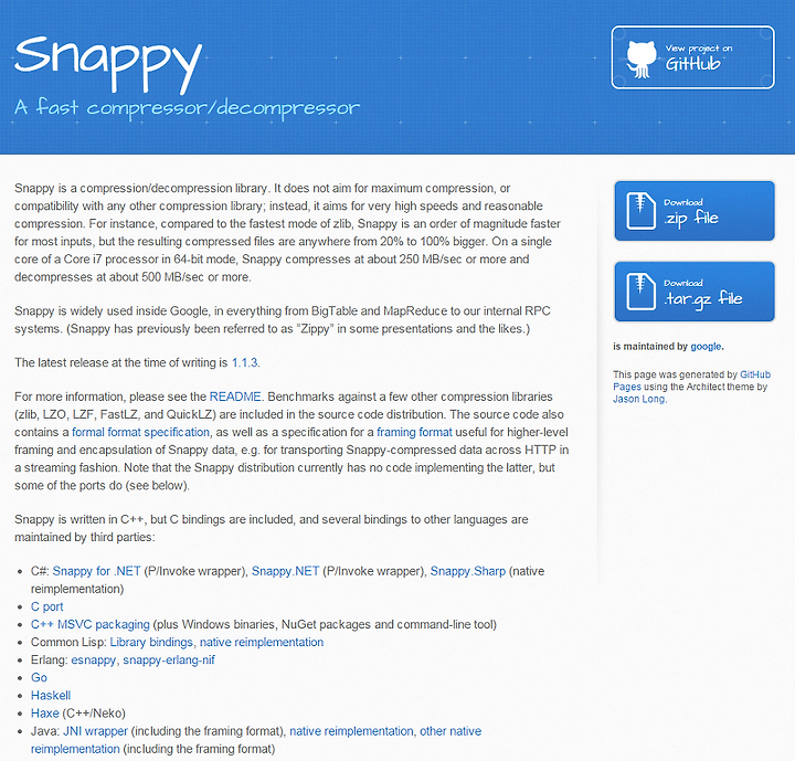 : 구글 오픈소스 Snappy